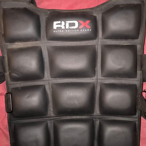 Reebok RAWT-11091 vægtvest i sort og rød. Vesten har polstrede vægtsektioner fordelt på for- og bagside samt justerbare spænder ved bryst og hofte for tilpasning til kroppen. Egnet til træning, løb eller anden fysisk aktivitet, hvor der ønskes ekstra belastning. Materialet er syntetisk med blød inderside og glat yderside. Kan bruges af både mænd og kvinder afhængigt af pasform.