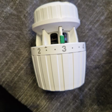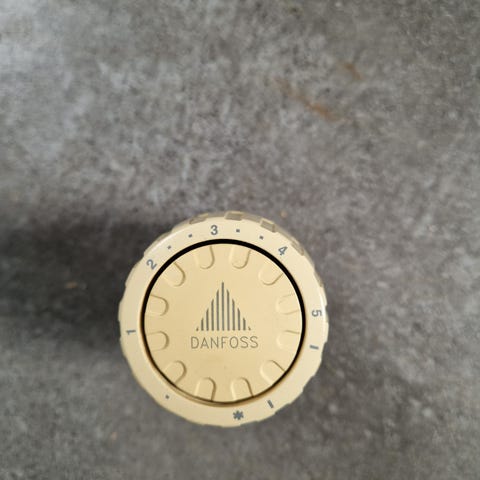 Danfoss radiatortermostat i hvid. Mekanisk termostat til montering på radiatorventil for regulering af rumtemperatur.