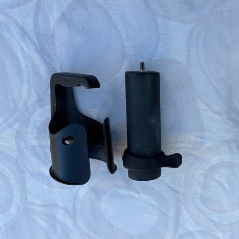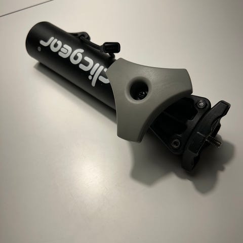 Holderen monteres på Clicgear golfvogn og har justerbar vinkel og retning.