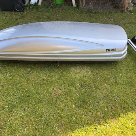 Thule Atlantis 900 tagboks i sølvfarve. Aerodynamisk hardcase tagboks med åbning i siden og integreret låsesystem. Indvendig bund med skinner til fastgørelse af bagage med beslag og remme. Velegnet til ekstra opbevaringsplads på bilens tag til fx ferierejser og transport af bagage. Plastoverflade med enkelte brugsspor som vist på billederne.
