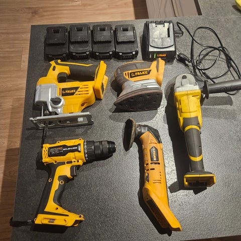 • Bemærk at fugeskæreren/multisliberen er uden batteri og lader - vi anbefaler et Falke 4,0 Ah batteri varenr. 9053688 samt oplader varenr. 9053689