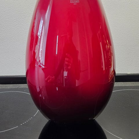 Holmegaard Cocoon i rødt glas. 26 cm. Ingen synlige brugsspor.