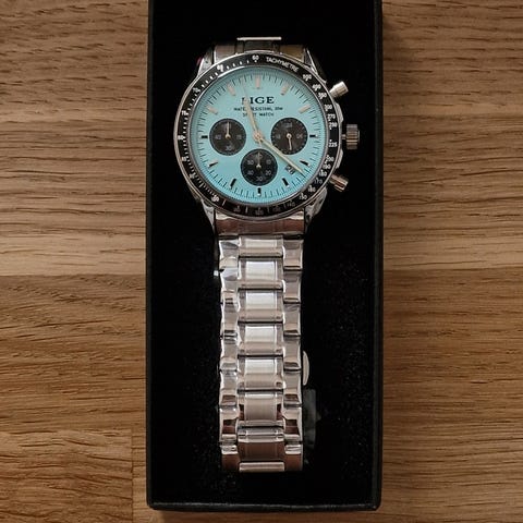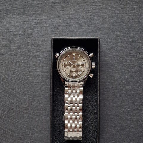 Helt nyt, ubrugt og stilfuldt herreur. Rem samt lås er stadigvæk beskyttet I folie. Kommer med et lille værktøj hvis der skal fjernes led på remmen. Kan sendes for 43 kr. eller afhentes privat