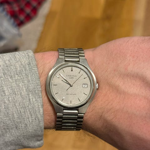 Seiko herreur analogt i sølvfarvet design med rund urskive og datoangivelse. Uret har lys skive med enkle timeindeks og tre visere. Kassen og den integrerede lænke er i metal med foldelås med Seiko-logo. Velegnet som klassisk hverdagsur til mænd.