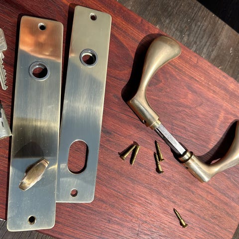 Velegnet til indvendige døre, hvor der ønskes et klassisk messinggreb med matchende nøgleskilte.
