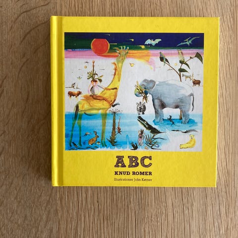 Knud Romer ABC billedbog til børn. Bogen gennemgår alfabetet med store og små bogstaver samt søde korte digte til hvert bogstav.