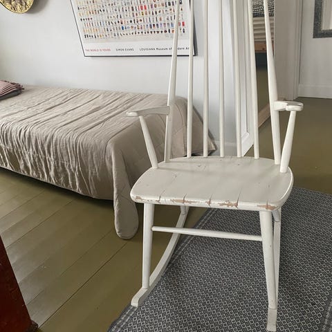 Gyngestol træ med broderet polstring