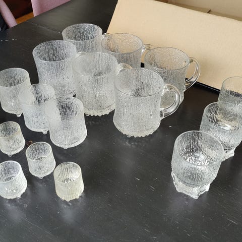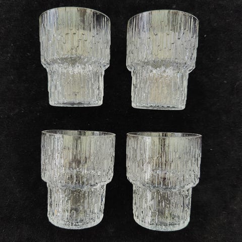 Rummelige flotte snapseglas eller lignende. Højde 5,5 cm, diameter 4,5 cm.
