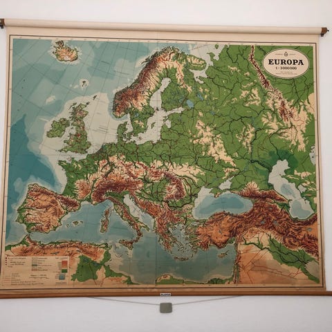 Vægkort samling over Europa, Danmark, verden og Tyskland