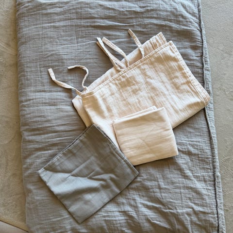Farve: lys rosa/beige og stribet (som på stofposen).