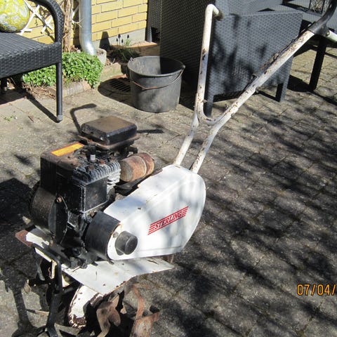 Havefræser til jordbearbejdning i have eller køkkenhave. Benzinmotor med styr og håndtag bagtil samt fræseknive foran. Velegnet til at løsne og lufte jorden før såning eller plantning samt til vedligeholdelse af bede og mindre arealer i haven.