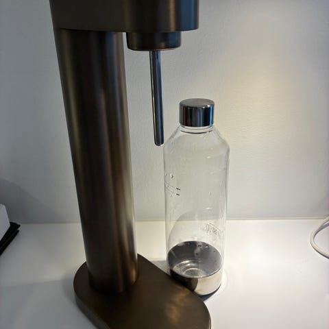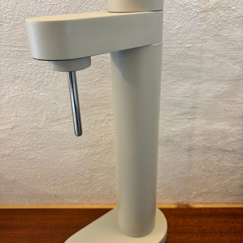 Stelton brusvandmaskine til at lave danskvand i medfølgende flaske, som monteres under dispenseren. Bemærk at bunden på den medfølgende flaske er gået løs, og derfor skal limes. Den er brugt en hel del, men bruser stadig fint. Prisen er også sat derefter. Nypris 1700