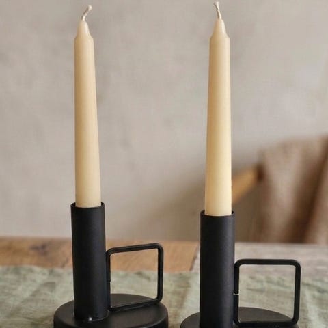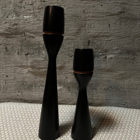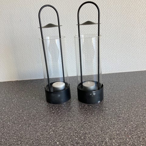 3 sorte letvægts lysestager i forskellige højder. Lysestagerne er kun brugt med ledlys, som medfølger.