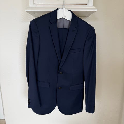 Sort med en mørkeblå lodret stribe i tekstilen.