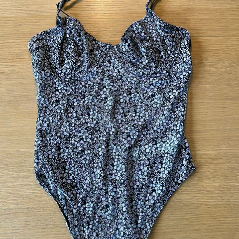 Flot blå ribbet bodystocking fra Forever 21 – helt ny med prismærke. Har høj hals og lynlås foran, samt elastisk materiale der sidder flot på kroppen.