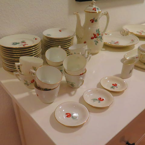 Kahla Æblebkomst Spisestel og Kaffestel med fade til 12 personer 88 dele pris ide 800 kr.,