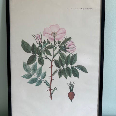 Rose tryk, Pierre Redouté, vintage, plakat
