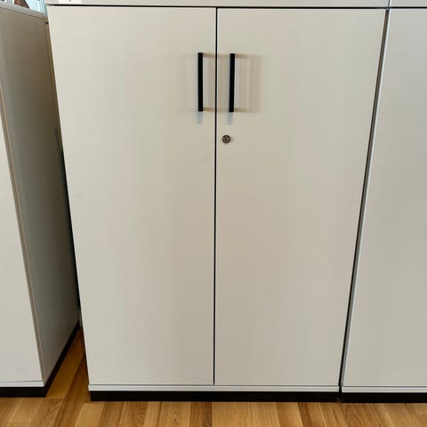 Elektronisk skab. Skabet har en øvre sektion med skærm og låge med nøglelås samt en nedre sektion med låsbar front. Egnet til brug i kontor- eller arkivmiljø til opbevaring og evt. elektronisk registrering eller visning via skærmen.