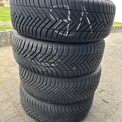 1x helårs dæk fra Michelin I størrelsen 205/60R16 92H med 3pmfs mærke. Der er 4mm mønster tilbage. Dækket er fra uge 44 år 2022. Det er lidt mørt I det. Se billederne