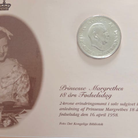 2 kr 1958,Prinsesse Margrethe 18 års fødselsdag,lækker sølvmønt