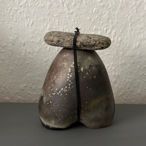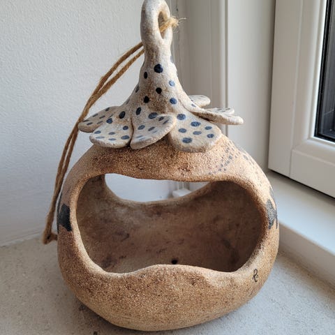 Med motiv af mennesker. Signeret, men jeg ved ikke af hvem. Den fremstår flot og intakt. Måler 20 cm lang.