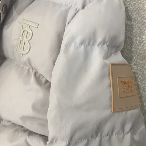 Burberry vinterjakke til herre i størrelse S. Jakken er sort og foret med dun. Den har hætte med klassisk ternet Burberry-for samt gennemgående lynlås og trykknapper foran. Der er Burberry London England-logo på ærmet. Velegnet som varm vinterjakke til daglig brug i koldt vejr.