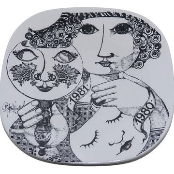 Sort Bjørn Wiinblad årsplatte 1979 - 1980.