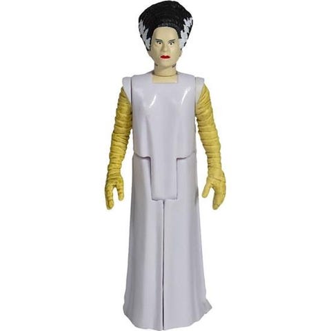 Ripped from the headlines! NECA is releasing a new Universal Monsters x Teenage Mutant Ninja Turtles action figure starring intrepid reporter April O'Neil! This continuing line pays tribute to the world's most famous turtles and Universal's icons of horror. April as The Bride reimagines Judith Hoag's April O'Neil as the Bride of Frankenstein in a terrifying mashup! Electrifying exposés! Shocking news stories! It's journalism that really goes for the jugular. WTRL's only reanimated reporter digs up the dirt with a full complement of accessories, and never misses a DEADline... This 7" scale figure includes microphone, handbag, spider, lightning bolt sai, interchangeable heads and swappable hands. Comes in collector-friendly window box packaging with opening flap featuring an all-new, breath-taking illustration by Daniel Horne.