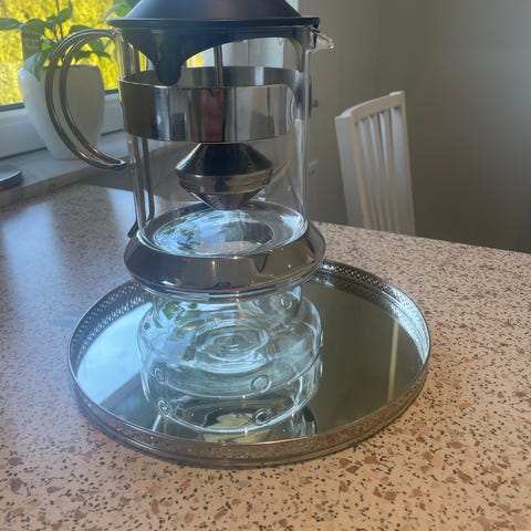 Bodum kaffekande i glas med aftageligt gråt stofbetræk med lynlås. Kanden har en afrundet form og glaslåg. Velegnet til servering af varme drikke som kaffe eller te. Betrækket kan tages af for rengøring, og glaskanden kan bruges både med og uden betræk.