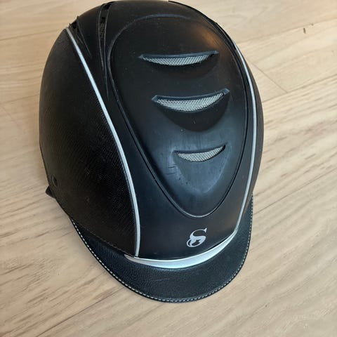 SCHARF brun ridehjelm mwd sort croco str. L/XL 58-62. Kan justeres i nakken. Pæn holdt.