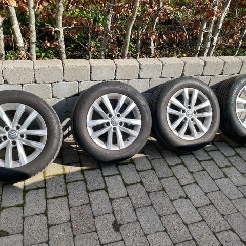 Monteret med helårsdæk som har kørt en enkelt sæson. 6-7 mm mønster tilbage.