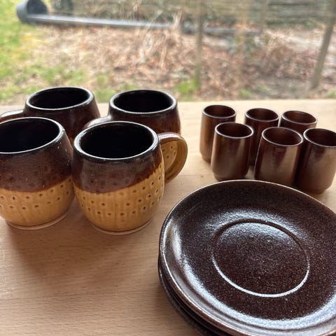 Fransk stentøjs skåle og krus.