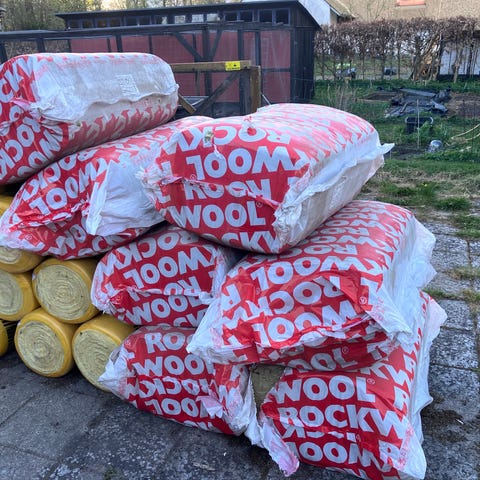 Oprindeligt til loftisolering. Jeg har haft delt det ned igennem midten til en tykkelse på ca. 50 mm og brugt som vægisolering i en let skillevæg. Endte med en balle overskud.