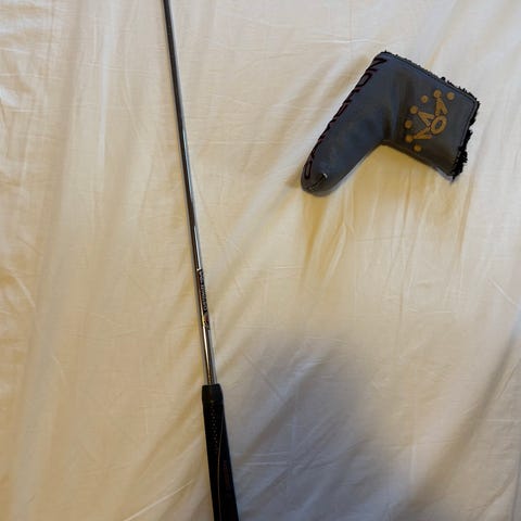 Titleist Scotty Cameron Select Newport 3 putter i stål til højrehåndsspillere. Mallet-inspireret hovedform med sigtelinjer på toplinjen og bagkanten. Fræset slagflade i stål. Justerbare vægte i sålen. Skaftet er monteret med Team USA grip. Medfølgende rød Scotty Cameron headcover i syntetisk materiale. Længden er 34”.