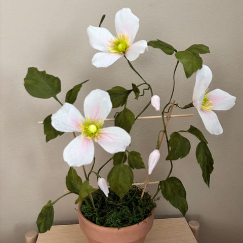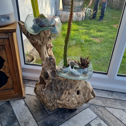 Er du træt af at vande planter? Så er evighedstræet her måske noget for dig. Det er lavet ud fra en tørret gren, som er slebet. Kronen er lavet af flotte helt lyse pampasgræs og i bunden af træet ligger lyse sten til dekoration. Træet måler 50 cm. Velegnet som vedligeholdelsesfrit indretningsdetalje i stue, vindueskarm eller på bord. Det står i en sød lille blå/grøn keramik potte, som evt nemt kan udskiftes hvis man har en anden man bedre kan lide. Hvert træ er helt unikt og håndlavet. Se evt mine andre annoncer.