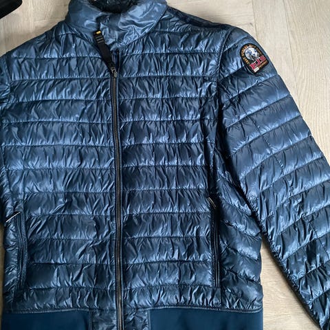 Parajumpers dunjakke til herre i størrelse L. Jakken er blå og foret med dun, hvilket giver let isolering.