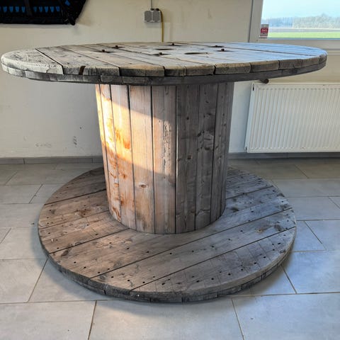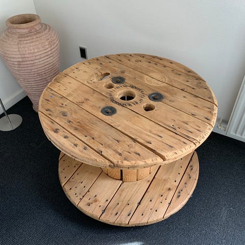 Fin kabeltrommel med hjul - jeg har brugt til udstilling med keramik - kan bruges til eksempelvis spisebord - du kan se tromlen i 2760 Måløv Ring 40461496 så laver vi en aftale