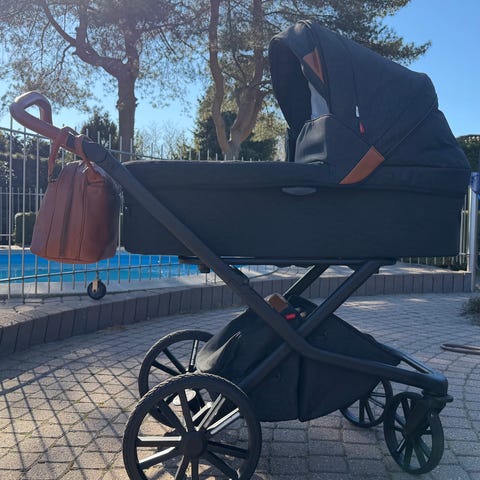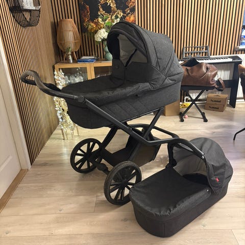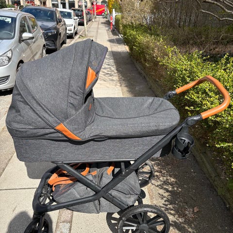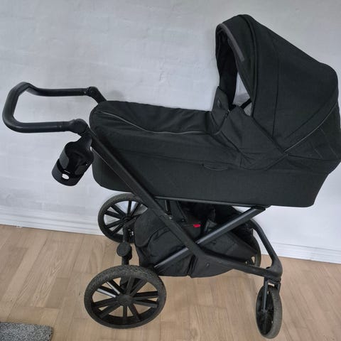 *Reserveret* Odder Vida barnevogn i Black melange og den er fra 2021. Barnevognen har stor liggedel med kaleche og lynlåsåbning, samt justerbart skubbehåndtag. Underdelen har taske med to rum til opbevaring. Den er opdateret med fire nye hjul med drejelige forhjul og faste baghjul. Indvendigt er der lys polstring i liggedelen. Der er en ridse i håndtaget.