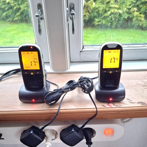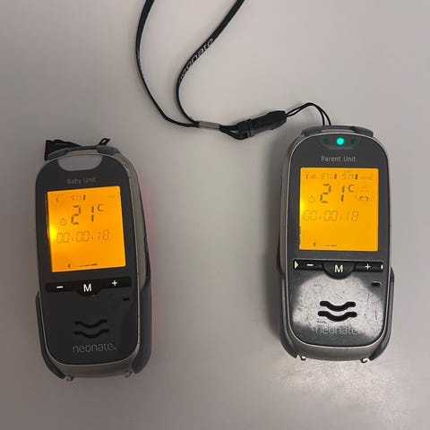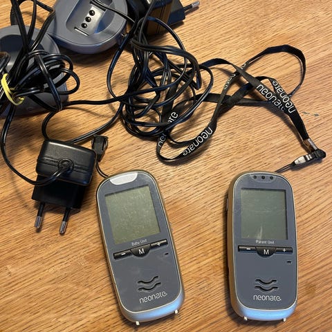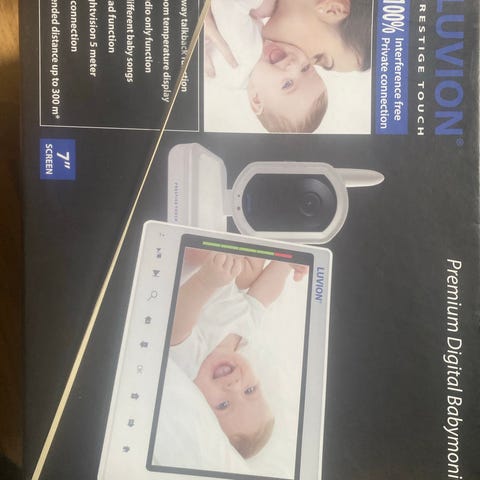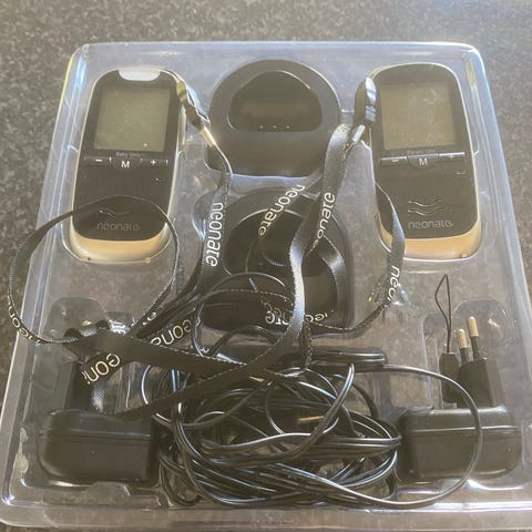 Sættet består af forældre- og babyenhed med farveskærm, kamera og temperaturvisning. Medfølgende tilbehør - oplader, kabler, beslag og brugervejledning i original æske. Fungerer perfekt, der er kommet en lille ridse i skærmen, hvilket ikke har nogen betydning for billed kvaliteten.