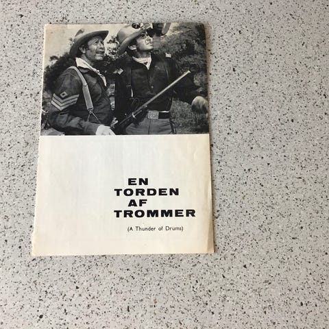 Rødt trommesæt. Ukendt fabrikat. Kraftige brugsspor. Rust på forkromede dele. Mangler og defekter forekommer.