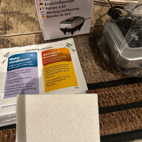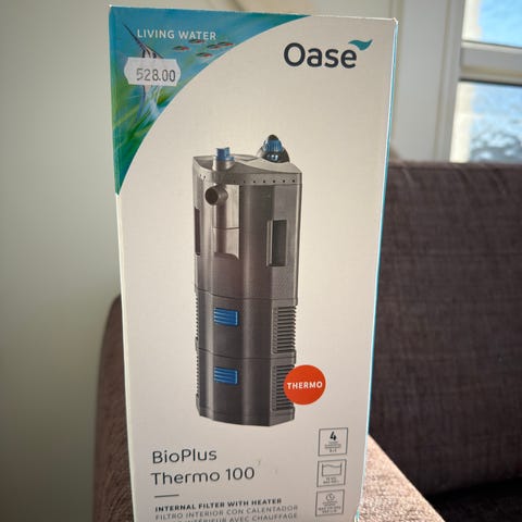 Oase BioFlow 50 akvariepumpe i sort plast. Pumpen er med sugekopper og holder til montering på akvariets glas. Der medfølger brugsanvisning og garantihæfte.