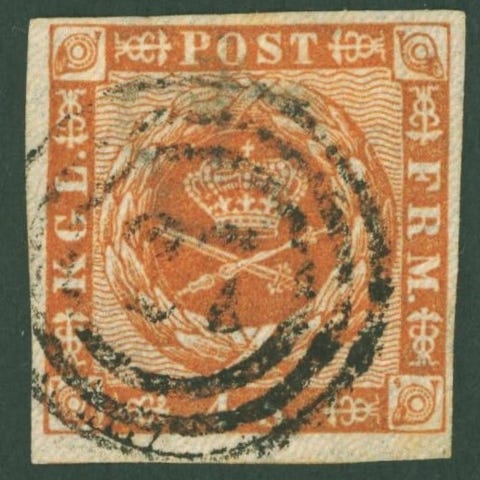 Danmark, stemplet, 1854. 4 Sk afanr 4 brun. Privattakket på klip med nr. stempel 2 Hamburg
