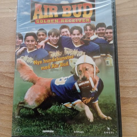 Air Bud Golden Receiver dvd film. Familiefilm om drengen Josh og hunden Buddy, der spiller amerikansk fodbold. Filmen er velegnet til hele familien og udgivet på dvd med dansk tekst ifølge omslaget. Egnet til hjemmebrug i dvd‑afspiller, med standard dvd‑cover som vist på billederne.