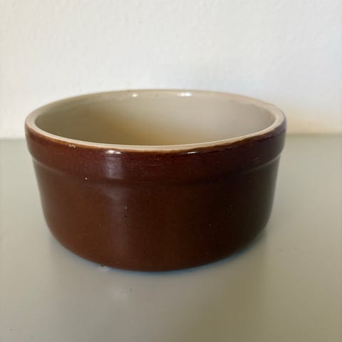 Rörstrand skål med hanke i brunt porcelæn. Skålen har glaseret brun yderside og lys, glat inderside. Den er velegnet til servering af supper, gryderetter eller tilbehør ved bordet. Skålen har to integrerede hanke i siderne, som gør den nem at løfte og håndtere. Klassisk Rörstrand-stempel under bunden.