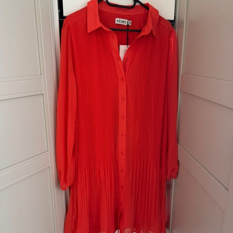 Zara fest/cocktailkjole til kvinder i str. M. Kjolen er rød og fremstillet i polyester. Modellen har V-udskæring, lange ærmer og markeret talje. Længden går cirka til under knæet, og stoffet falder let. Velegnet til festlige lejligheder og andre anledninger, hvor en enkel, rød kjole ønskes.