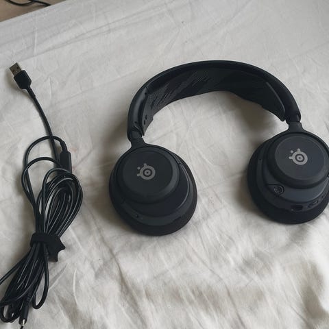 Steelseries headset i hvid farve med ørekopper i stof og justerbar mikrofon på venstre side. Headsettet har polstret hovedbøjle med elastisk rem for bedre pasform. Velegnet til brug ved computer, f.eks. gaming, online møder eller generel medielyd. Tastatur og mus medfølger.