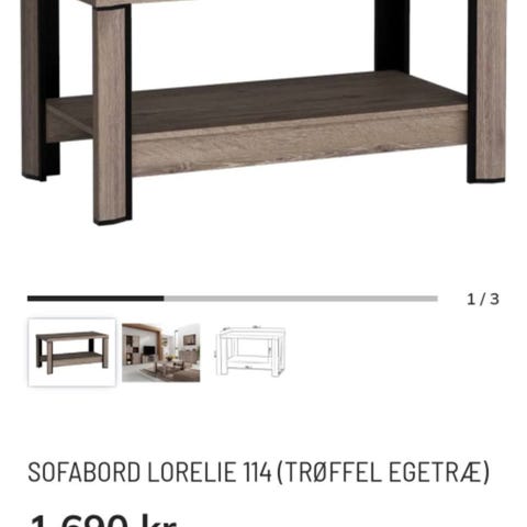 Jeg sælger mit sofabord, der er to dele som ses på billedet og det mindre bord kan skubbes ind under det store. På det sidste billede kan man se der er en mindre fejl på det lille bord.