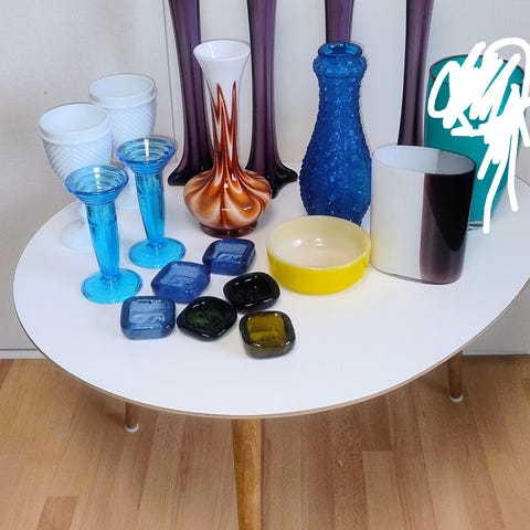 (Mange af tingene er nu solgt, jeg har lagt et par fotos på med røde krydser over de solgte ting.)