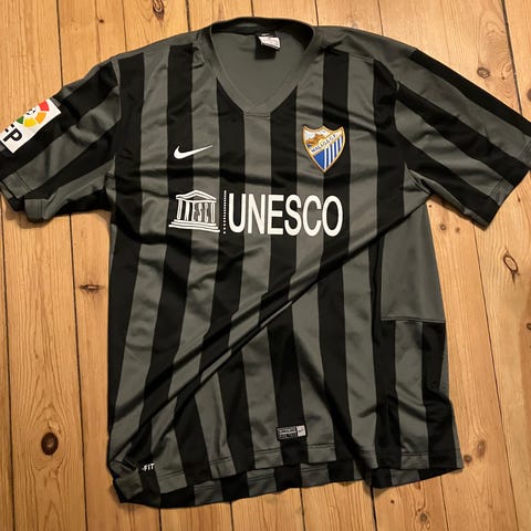 Nike Málaga CF fodboldtrøje i grøn. Trøjen har klublogo på brystet, Nike-logo samt UNESCO-sponsortryk på fronten og tryk på ærmet. Kortærmet model i let og åndbart materiale, egnet til fodbold og anden sport. Unisex design.
