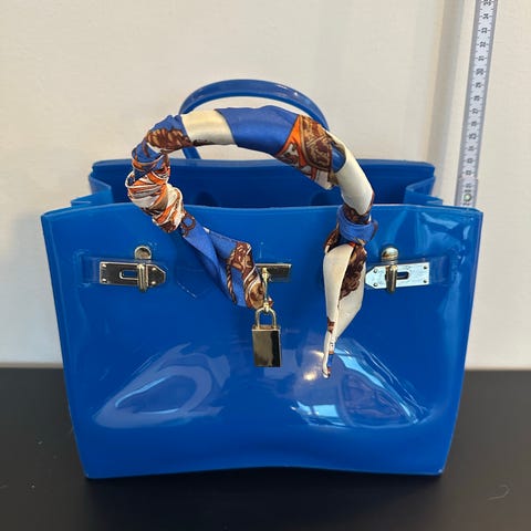 Rød håndtaske i stærk plast. Mærke ukendt. Brugt få gange.